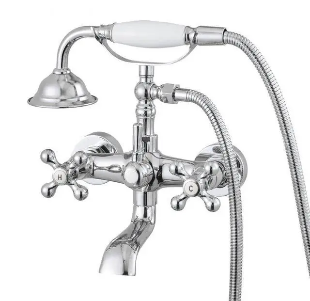 VEVOR Clawfoot Tub Faucet, Wall Mount Bathtub Faucets with Handheld Shower, Vintage Polished Chrome Clawfoot Tub Filler Faucet Shower Kit with Adjustable Swing Arms & 360° Rotation Spout for Bathtubs