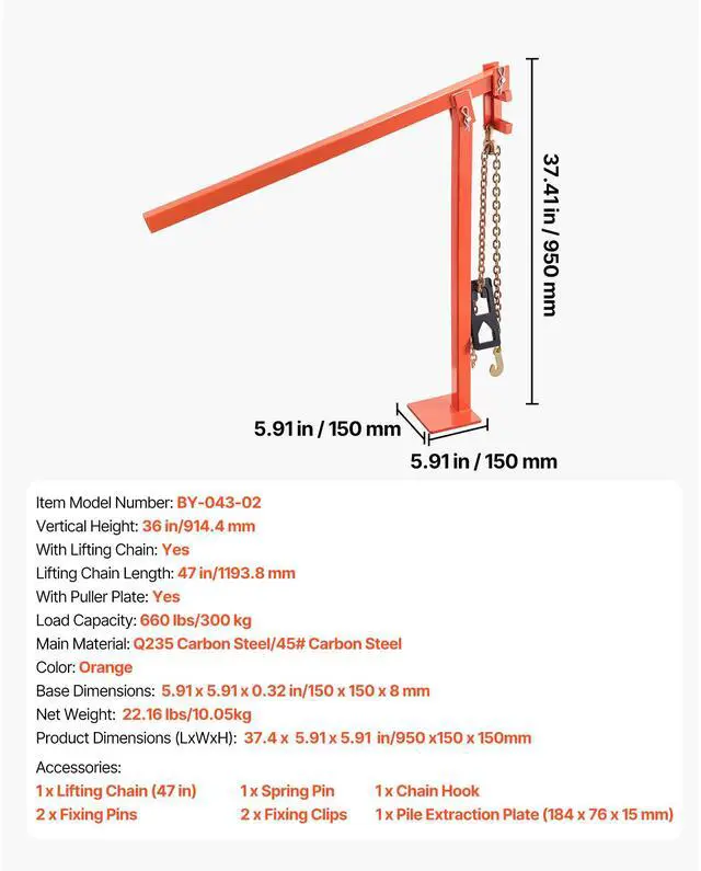 Lifting Chain Length: 47 in/ 1193.8 mm