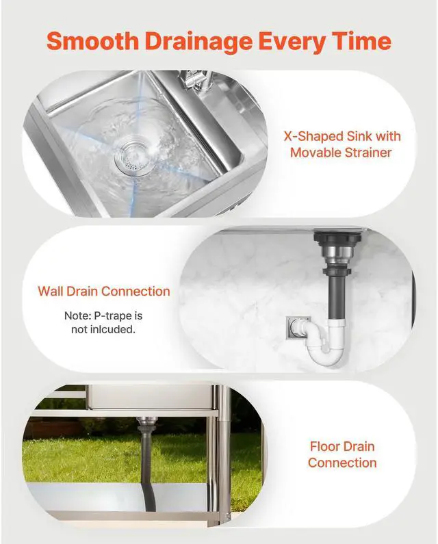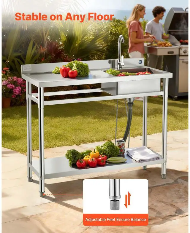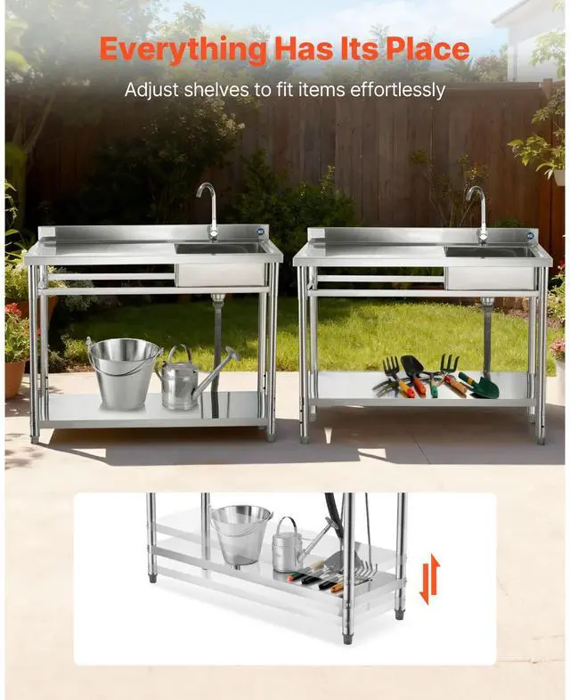 VEVOR Stainless Steel Utility Sink, Free Standing Single Bowl Commercial Kitchen Sink with Faucet, Utility Left Basin Workbench with Hot & Cold Water Pipe for Garage Restaurant Laundry, 47x19.7x37 in