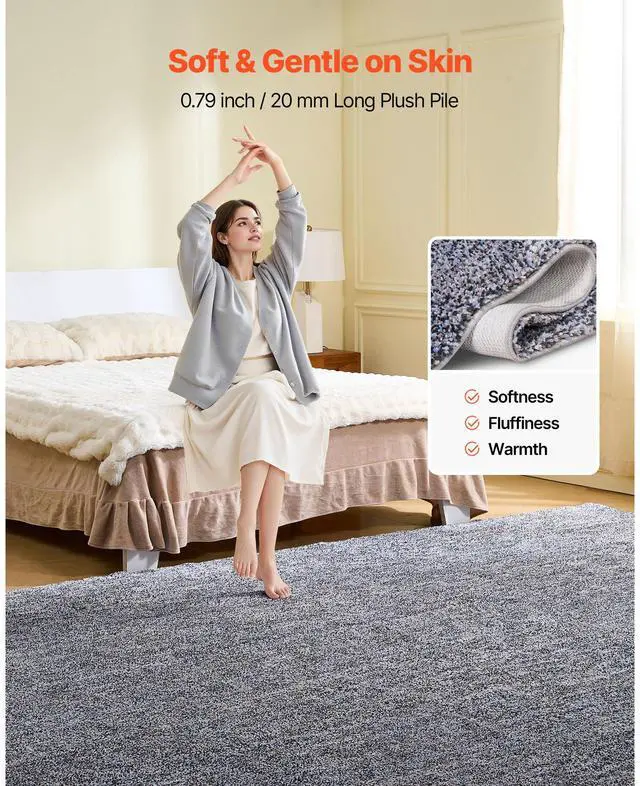 VEVOR Indoor Plush Area Rugs, 9 x 12 ft Plush Carpet, Area Rugs Furry with Long Plushs Pile, Thick & Durable High-Pile Rug for High-Traffic Areas, Non-Shedding & Non-Slip Backing, Blue-Gray