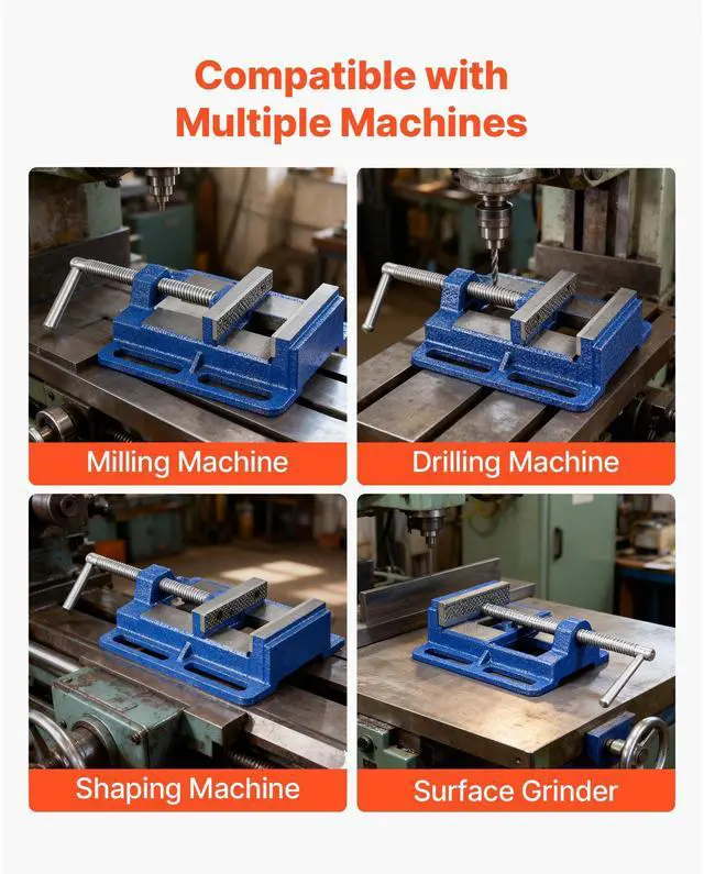 VEVOR Drill Press Vise, 4 Inch Jaw Width, Portable Bench Vise, Slotted Base for Easy Installation, Durable Cast Iron Construction, Workbench Vice, for Woodworking, Metalworking, Drilling, and Cutting