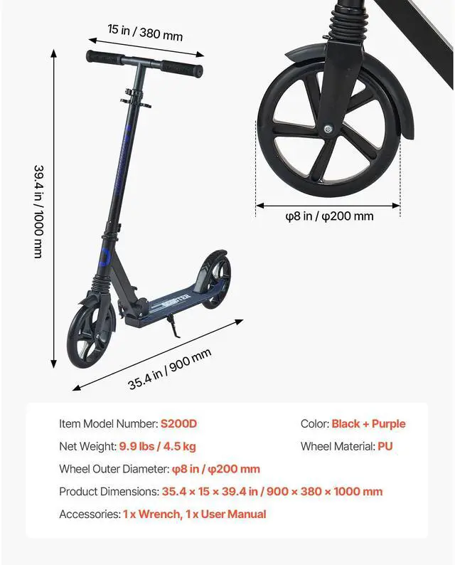 Wheel Outer Diameter: 8 in/200 mm,Color: Black + Purple,Item Model Number: S200D,Product Dimensions: 35.4 x 15 x 39.4 in/900 x 380 x 1000 mm,Net Weight: 9.9 lbs/4.5 kg,Wheel Material: PU