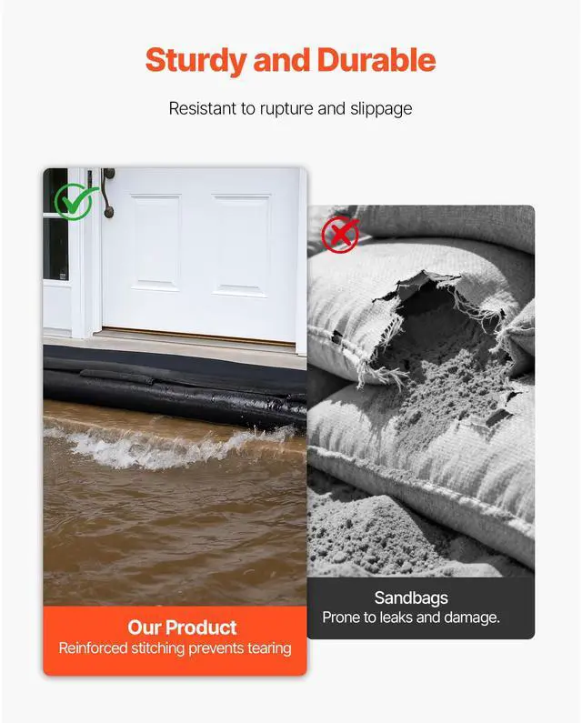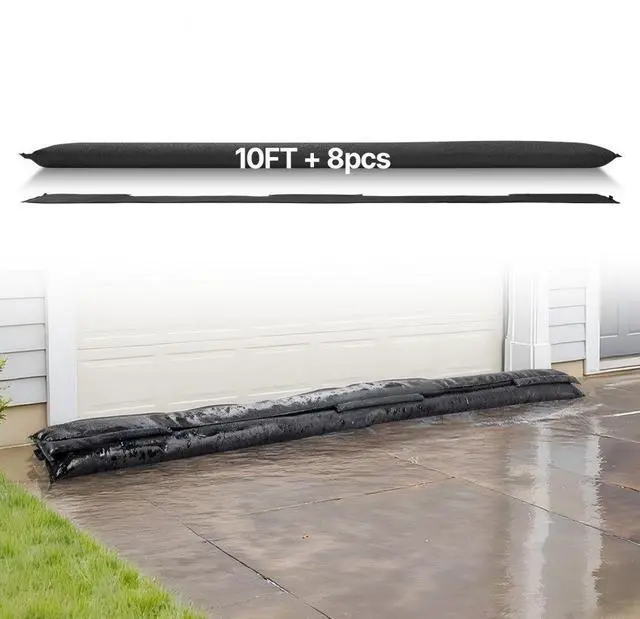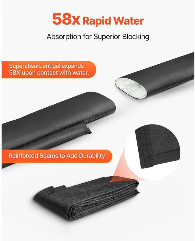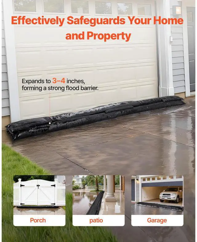 VEVOR Flood Barrier, 8 Pack, 10 x 0.7 ft Flood Bags Activated by Water, Reusable Water Absorbent Barrier, Sandless Sandbags Blockage, Flooding Prevention Bags for Home, Doorway, Basement, Garage