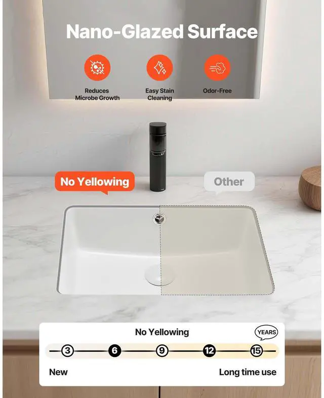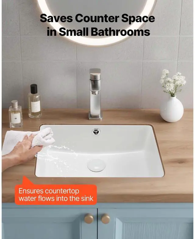 VEVOR Undermount Bathroom Sink, 18.5 x 13.19 Inch Rectangular White Ceramic Vessel Sink with Overflow Hole, Under Counter Drop in Modern Lavatory Vanity Bath Wash Bowl Basin, Rectangle Small Space