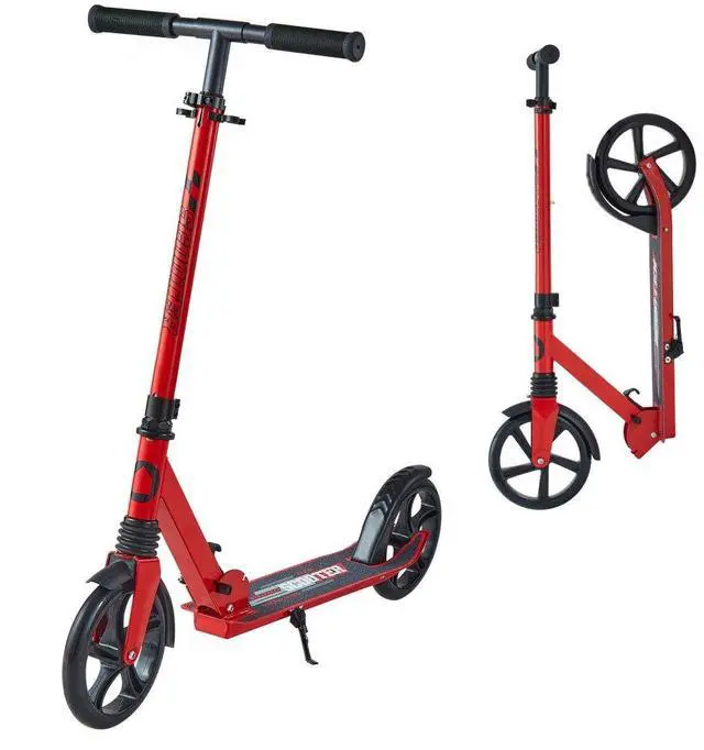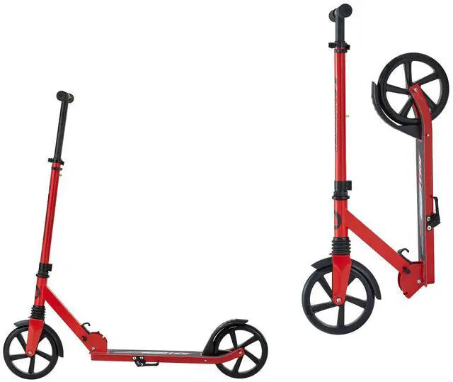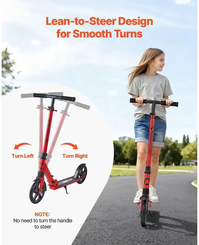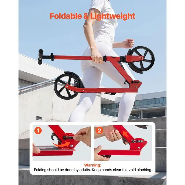 VEVOR Kick Scooter for Kids Ages 8+, Teens & Adults, 2-Wheel Toddler Scooter with Adjustable Height Handlebar, Wide Anti-Slip Deck, Foldable Lightweight for Boys & Girls up to 220 lbs, Red + Black