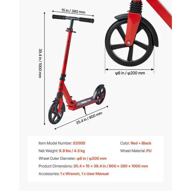 Wheel Outer Diameter: 8 in/200 mm,Color: Red + Black,Item Model Number: S200D,Product Dimensions: 35.4 x 15 x 39.4 in/900 x 380 x 1000 mm,Net Weight: 9.9 lbs/4.5 kg,Wheel Material: PU
