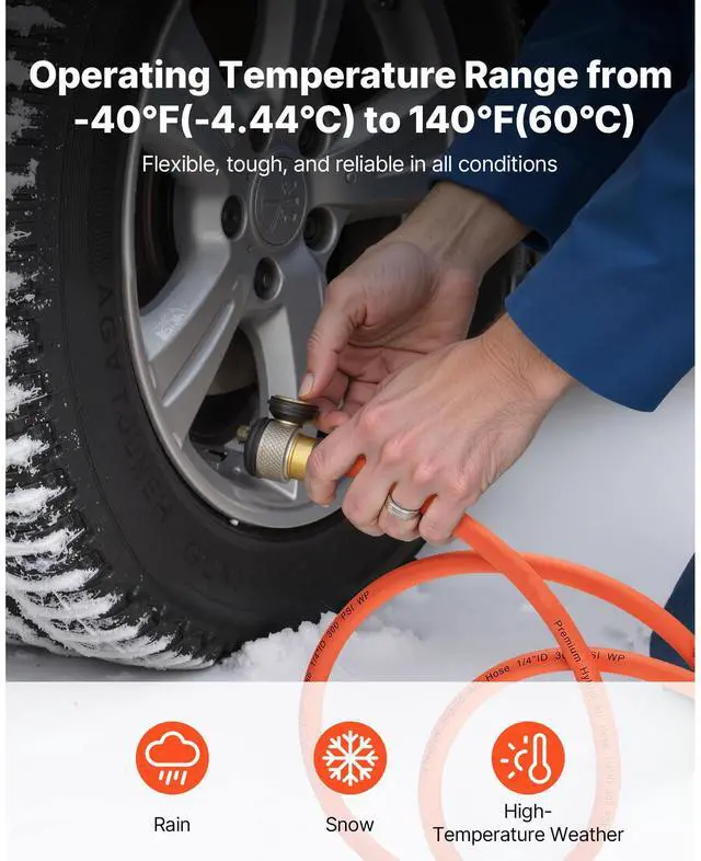 VEVOR Air Hose, 3/8'' x 250ft Hybrid Air Hose, Lightweight, Kink Resistant, Pneumatic Hoses with Three-Layer Hybrid Material for Auto, Home & Building, 300 PSI, All-Weather Flexibility, Orange