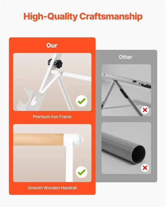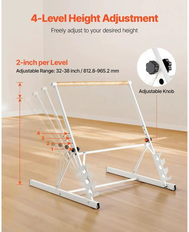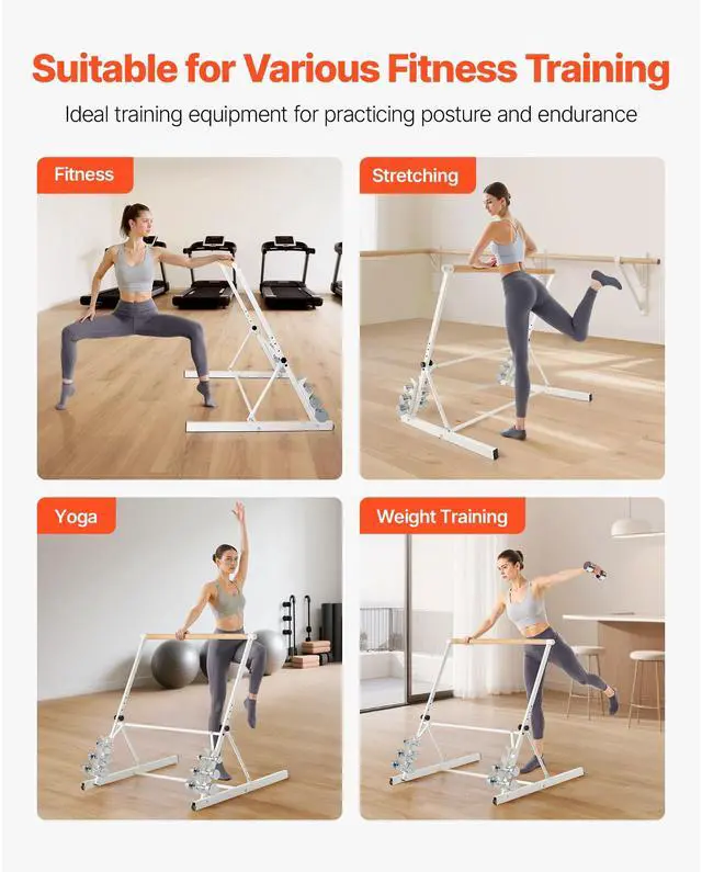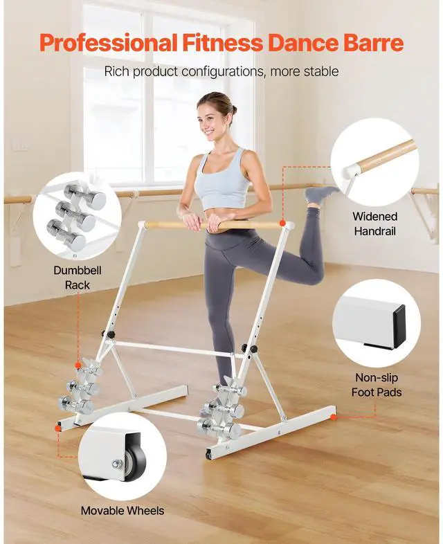 VEVOR Ballet Barre, 3 ft Freestanding Portable Barre Bar, Home Fitness Exercise Equipment for Abs, Arms, Strength, and Cardio, Easy to Store Foldable Stretching Dance Bars, 4 Level Height Adjustable