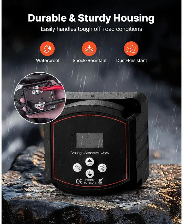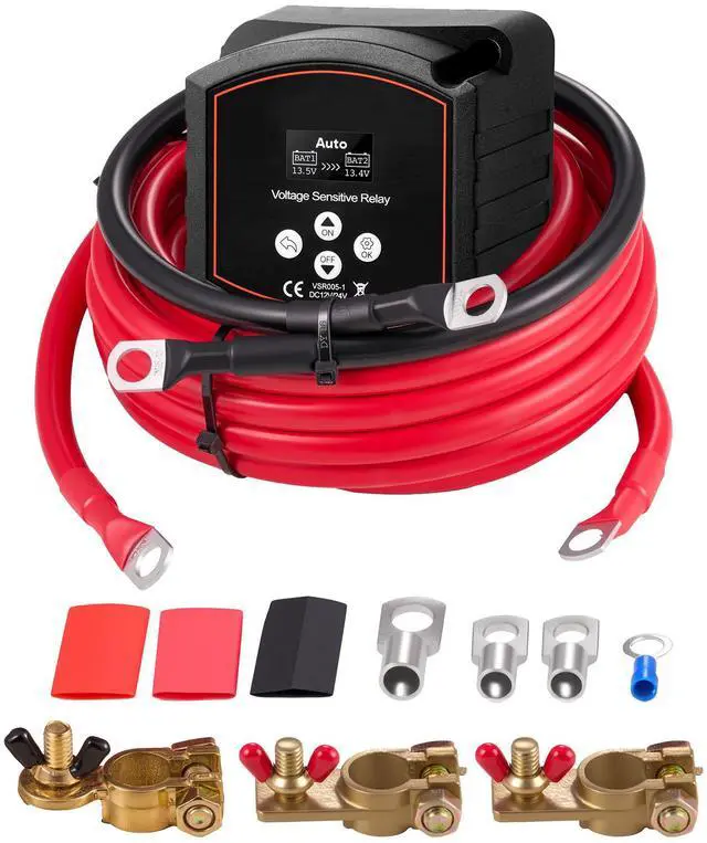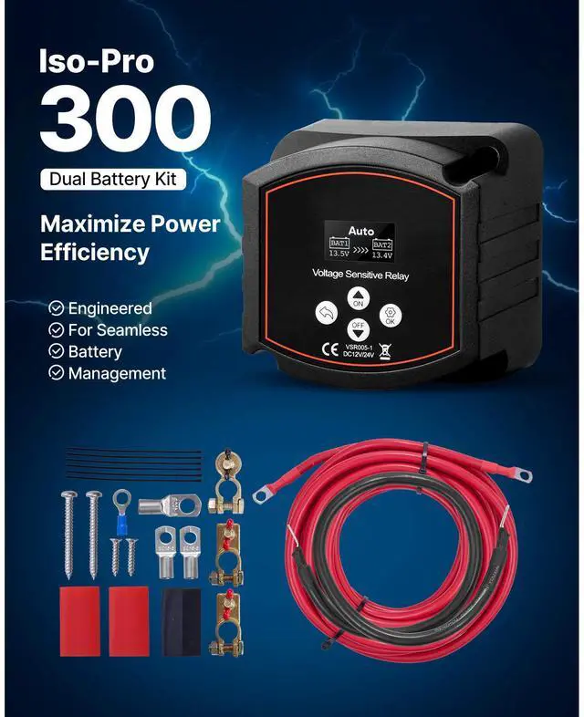 VEVOR Dual Battery Isolator Kit, 12V 300 Amp, Manual and Automatic VSR Voltage Sensitive Relay with Voltmeter, LCD Screen, Smart Battery Isolator, Compatible with Lead-Acid Batteries, for UTV, ATV