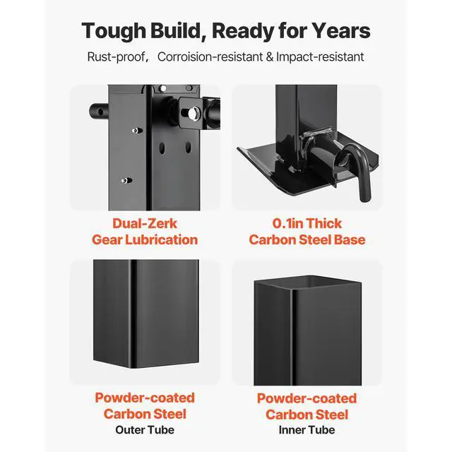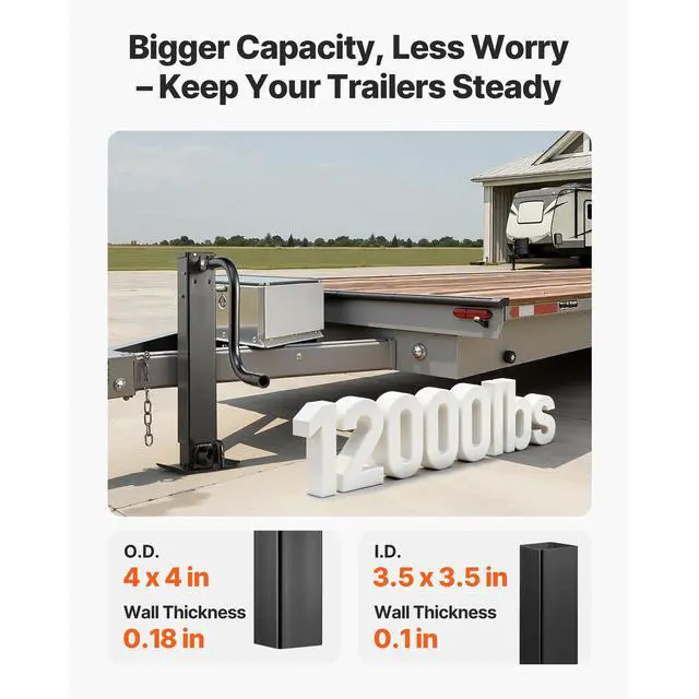 VEVOR Heavy-Duty Trailer Jack, 12,000 lbs Load Capacity, Sidewind Square Direct Weld-on Trailer Jack with Handle Crank, Adjustable Drop Leg, 26-Inch Travel for Lifting RV, Utility, Yacht Trailers