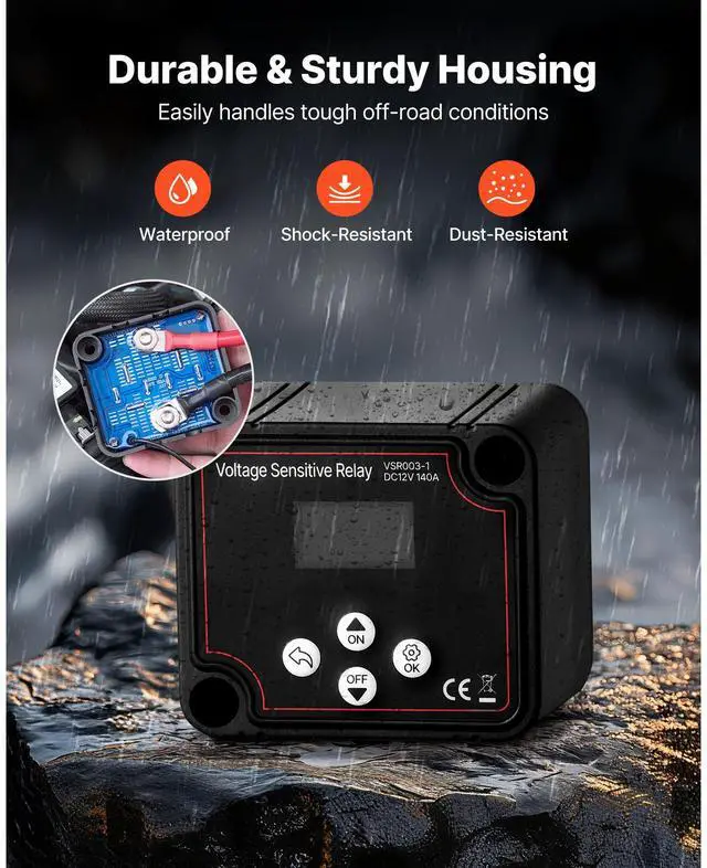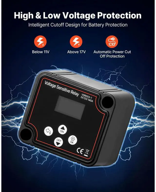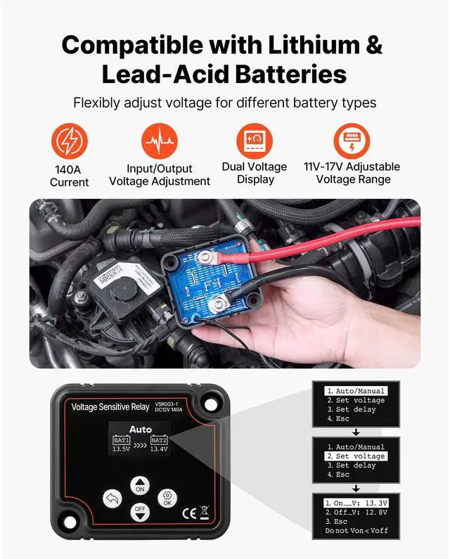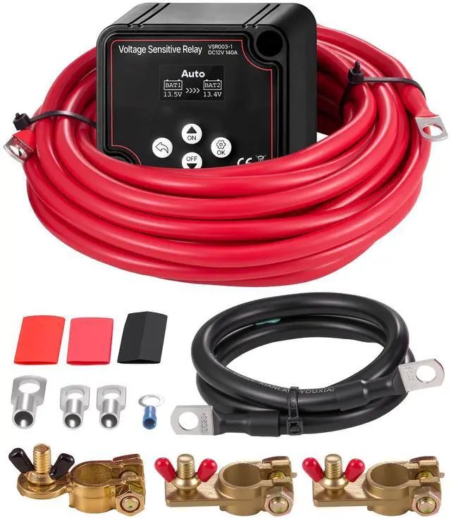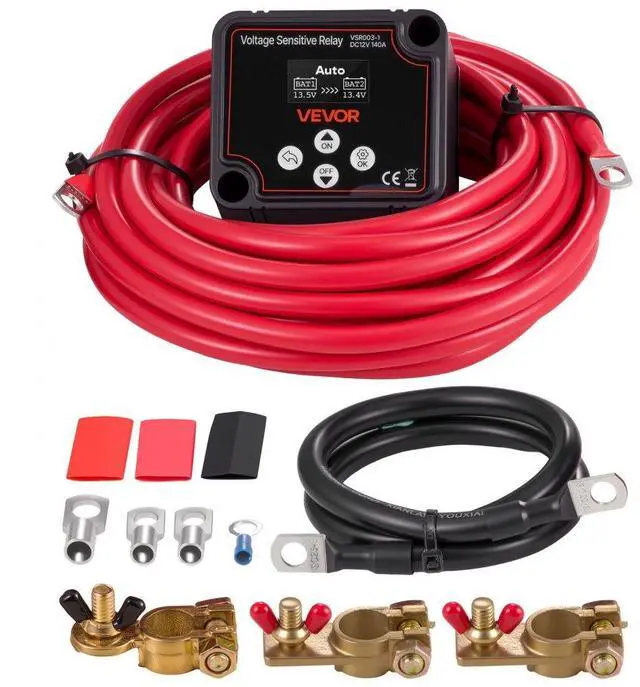 VEVOR Dual Battery Isolator Kit, 12V 140 Amp, Manual and Automatic VSR Voltage Sensitive Relay with Voltmeter, LCD Screen, Smart Battery Isolator, Compatible with Lead-Acid Batteries, for UTV, ATV
