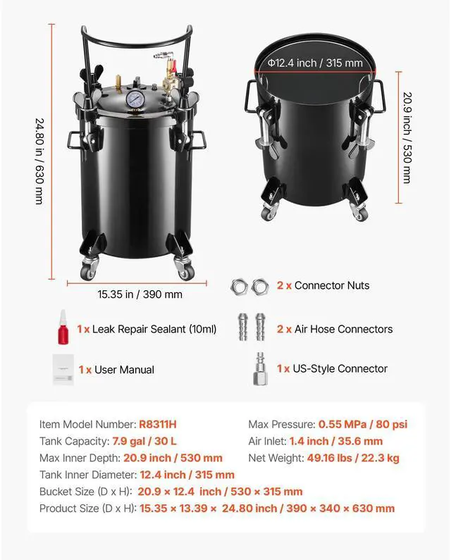 Tank Inner Diameter: 12.4 inch/315 mm