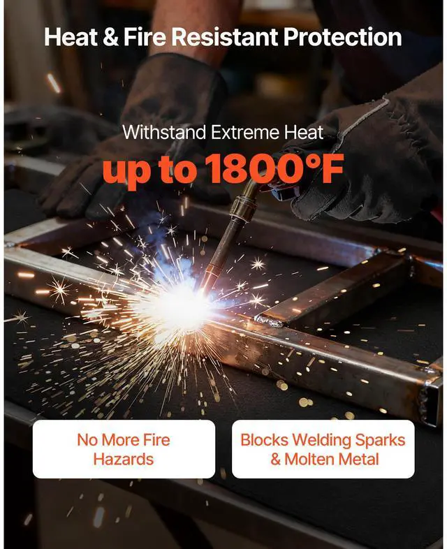 VEVOR Carbon Felt Welding Blanket, 40" x 40" Flame Retardant Welding Blanket, Up to 1800°F Heat Resistant Safety Protection Blanket, 3.5mm Thickened Carbon Fiber Fireproof Insulation Mat Pad