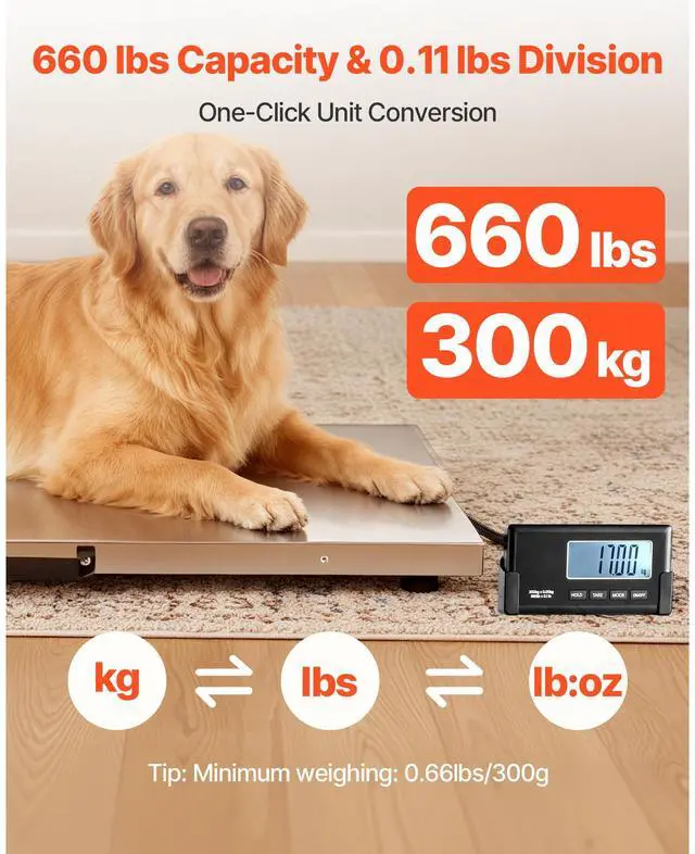 VEVOR Digital Shipping Scale, 0.1 lbs High Accuracy, 660 lbs Postal Scale with LCD Display, Hold/Tare Function & AC/DC Power Supply, Fit for Packages, Postage, Luggage, Battery & Adapter Included