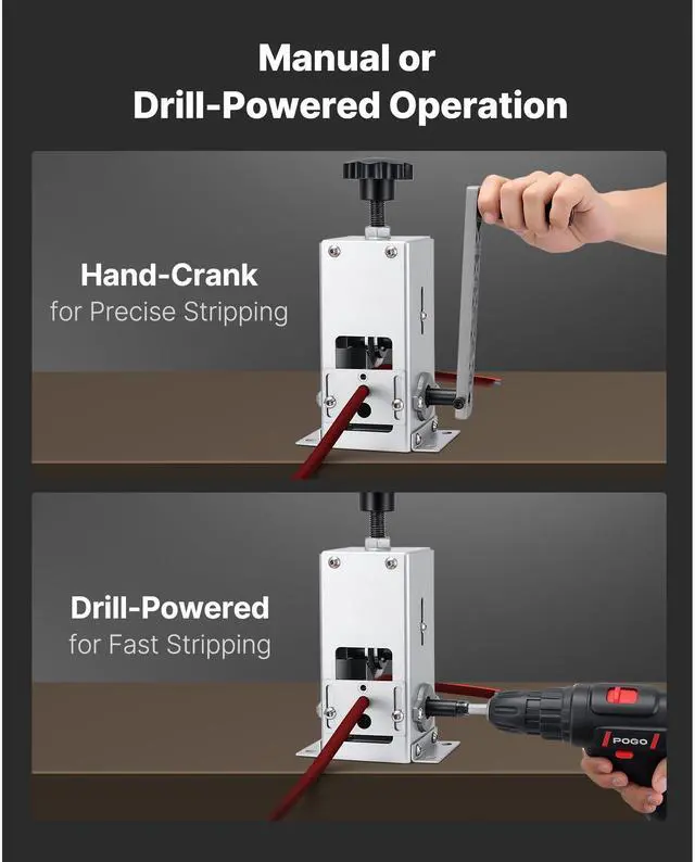 VEVOR Manual Wire Stripper Machine, 0.06-1.18 in, Copper Cable Stripper Tool, Hand Crank or Drill Powered Modes, Heavy-Duty Q235 Frame Wire Stripping Machine, Easy to Use, for Scrap Copper Recycling