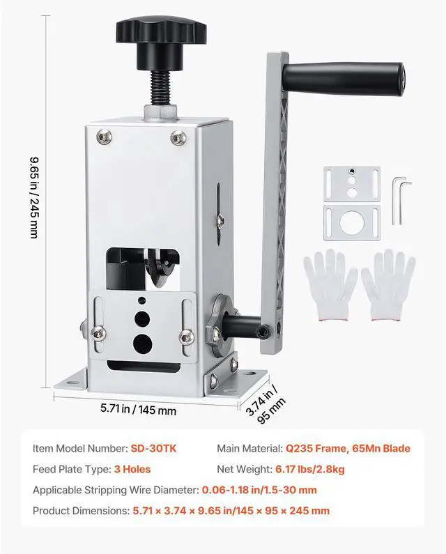 Applicable Stripping Wire Diameter: 0.06-1.18 in/1.5-30 mm,Feed Plate Type: 3 Holes,Item Model Number: SD-30TK,Main Material: Q235 Frame, 65Mn Blade