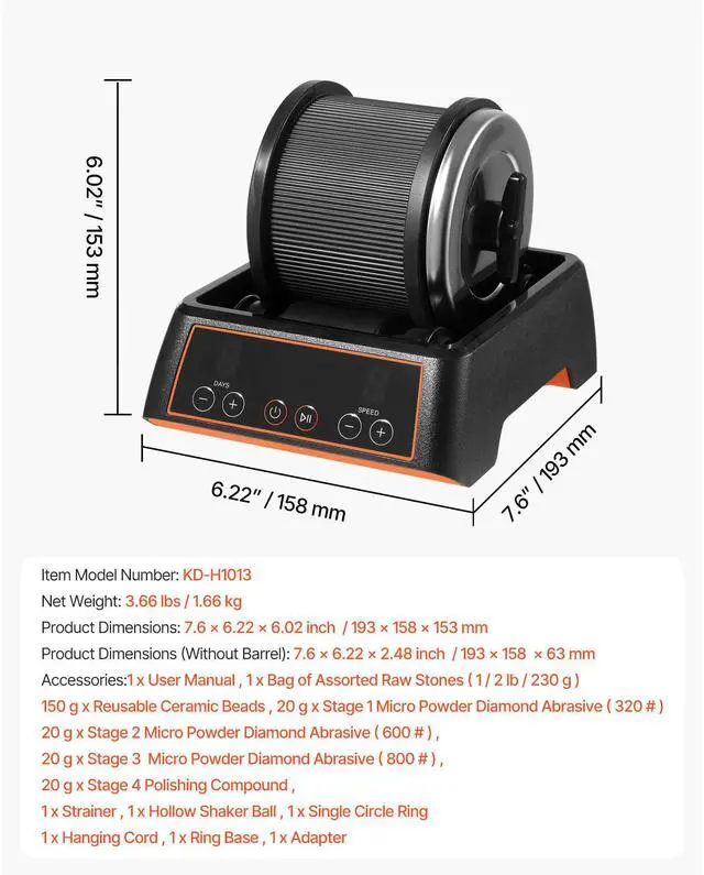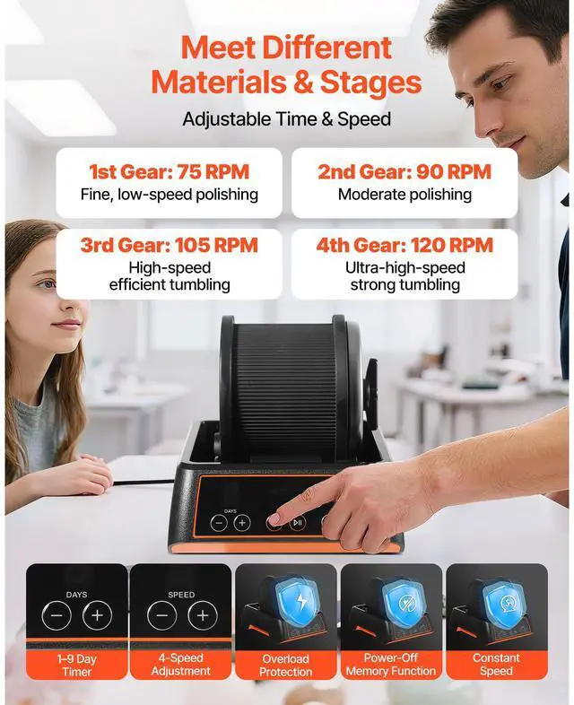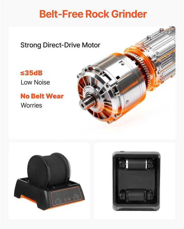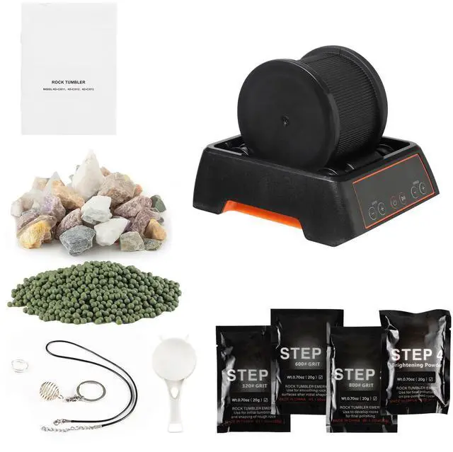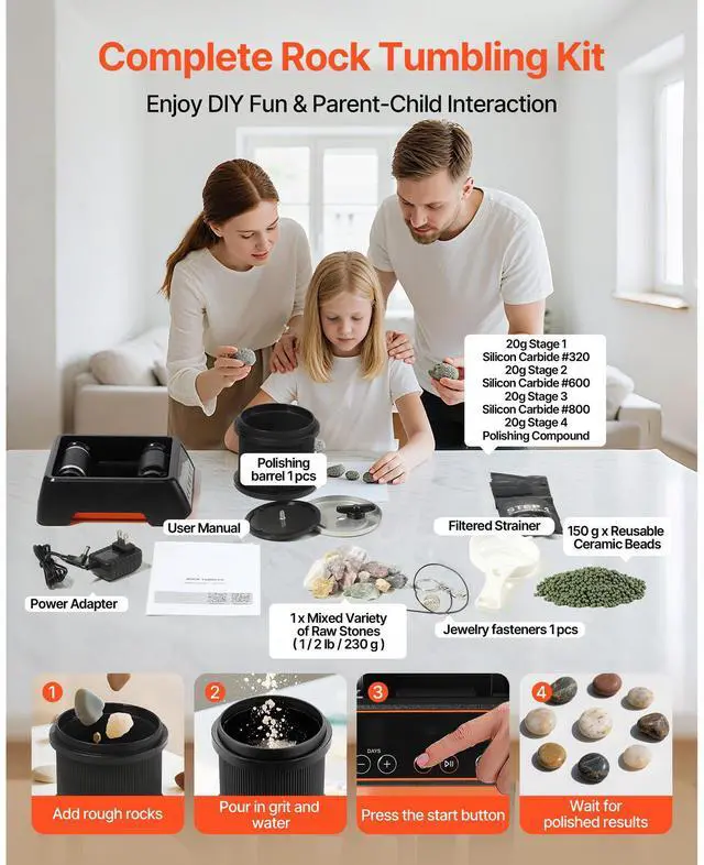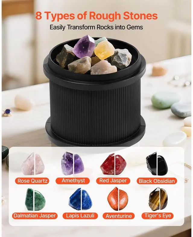 VEVOR Rock Tumbler, 1 lb Rock Polishing Machine, Rocks Tumbling Kit with 4-Speed Adjustment, 19 Day Timer, Direct Drive Motor Rocks Polishing Kit for Rose Quartz, Amethyst, Quiet Operation