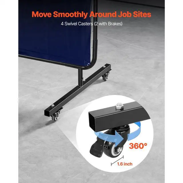VEVOR Welding Screen with Frame, 6 x 8 FT Welding Curtain Screen, Flame-Resistant Vinyl Safety Protection Screens with Lockable Swivel Wheels & 6-Level UV Protection for Workshop/Industrial Use, Blue