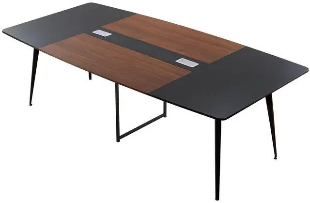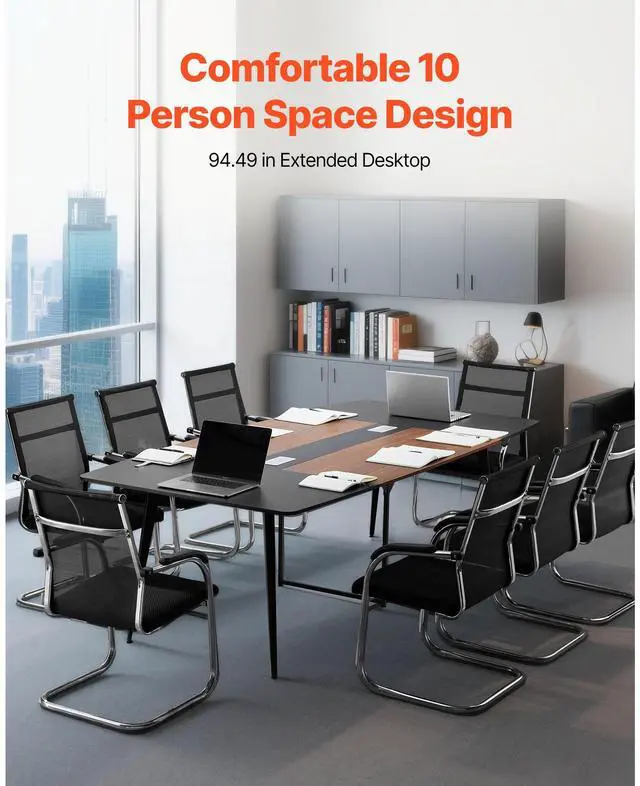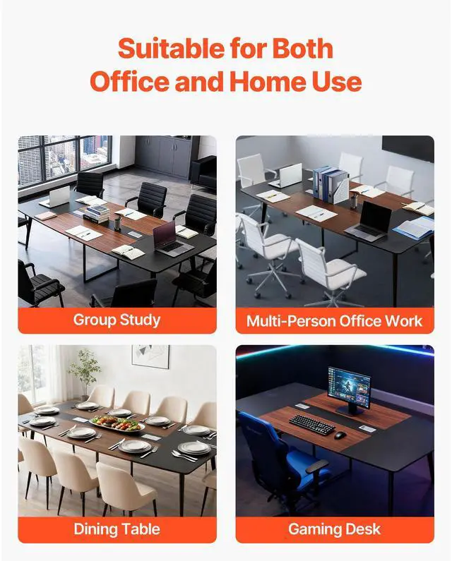 VEVOR Conference Table, 8 ft Boat Shaped Office Meeting Table for 10 Person, Modern Large Boat Meeting Desk with Metal Legs, Ideal for Office, Boardroom, Conference Room, Easy Assembly, Black & Brown