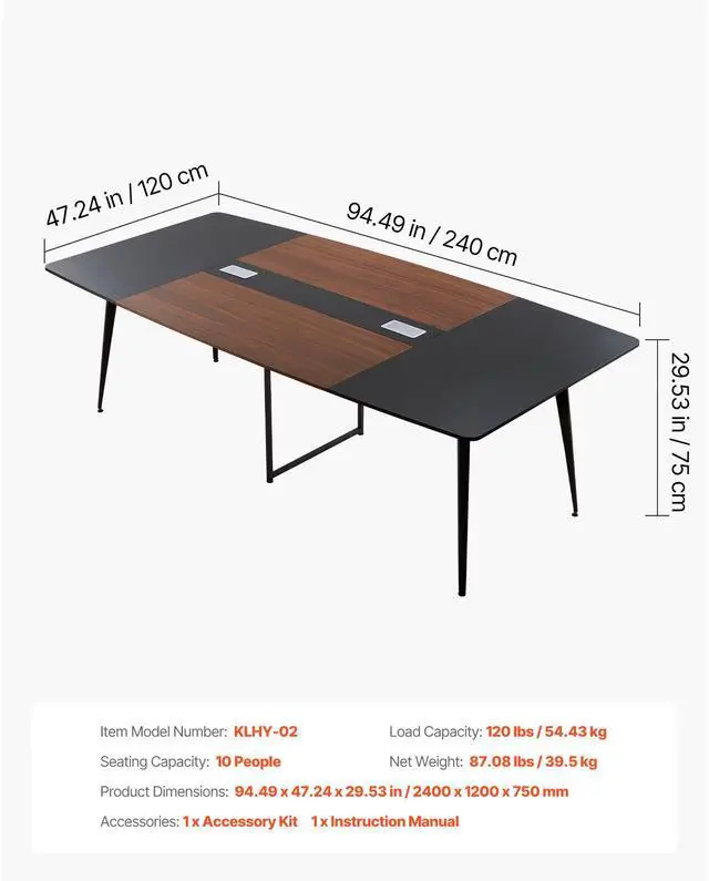 Seating Capacity: 10 person,Load Capacity: 120 lbs / 54.43 kg,Item Model Number: KLHY-02,Product Dimensions: 94.49 x 47.24 x 29.53 in / 2400 x 1200 x 750 mm,Net Weight: 87.08 lbs / 39.5 kg