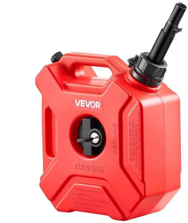 VEVOR Fuel Container, 1.3 Gallon, Gas Can with Spout and Lockable Bracket, 15 L/min Max Flow Rate, Secure & Leak-proof, Portable Flat Fluid Container for Most Cars Motorcycle ATV UTV, Red