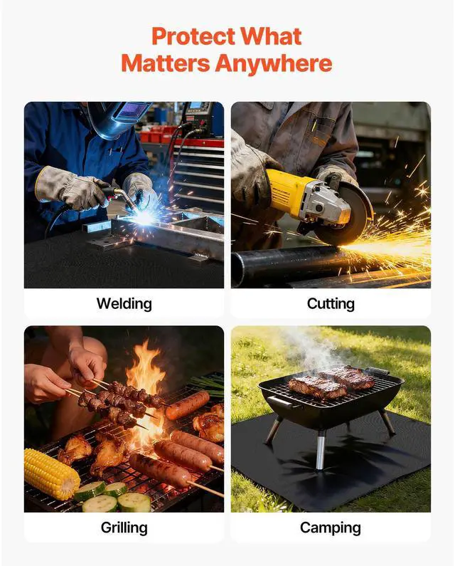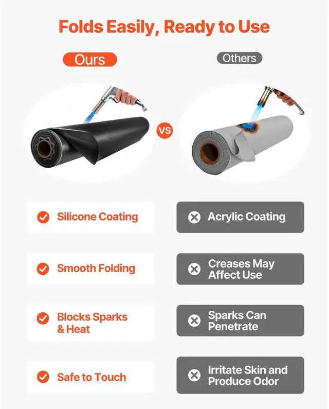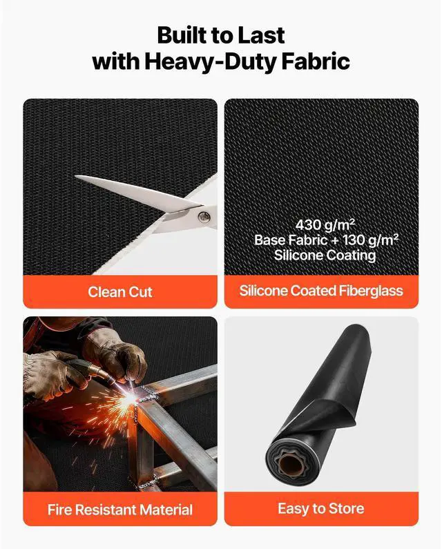 VEVOR Welding Blanket Roll, 5 x 150 FT Silicone Coated Fiberglass Welding Blanket, Up to 1800°F Heat Resistant Safety Protection Blankets, Flame Retardant Fireproof Insulation Mat Roll
