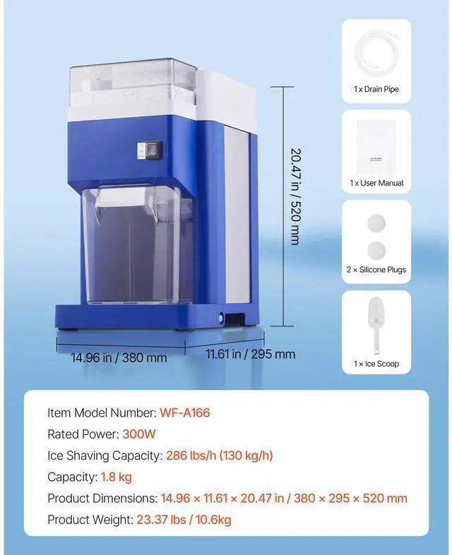Ice Shaving Capacity: 286 lbs/h (130 kg/h)