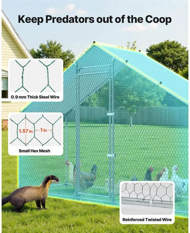 VEVOR Large Metal Chicken Coop,9.8 x 3.3 x 6.6 ft, Walk-in Chicken Run House with Waterproof Cover & Sturdy Frame, Spire Roof Poultry Cage Duck Pen for Rabbit Hen Goose Outdoor Backyard Farm Use