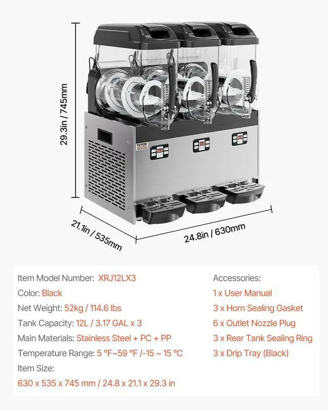 Tank Capacity: 3.17 Gal x 3 / 12 L x 3