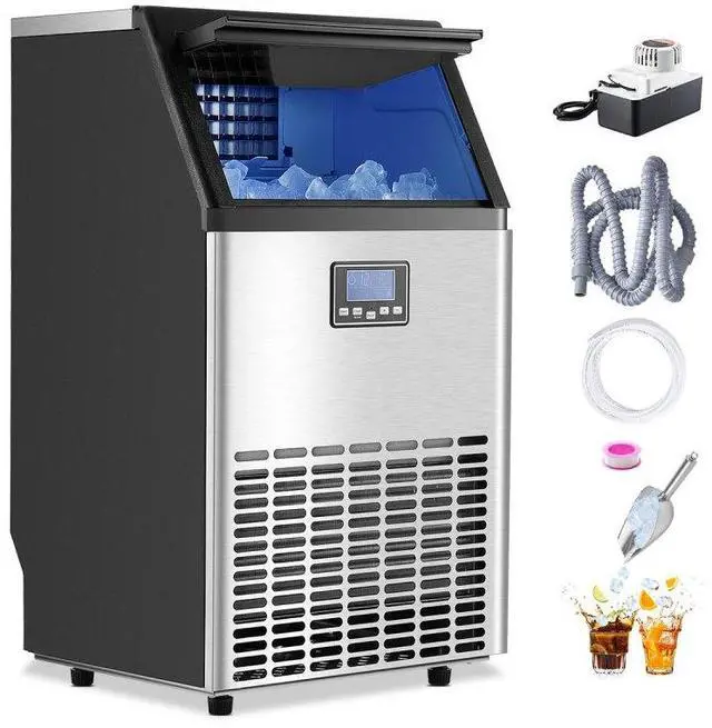 VEVOR 100lbs/24H Commercial Ice Maker Machine, 33lbs Storage Capacity Ice Maker with Drain Pump, 45 Ice Cubes in 15 Minutes, LED Digital Display Freestanding Self-Cleaning for Bar Office Restaurant