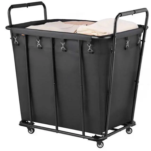 VEVOR Laundry Cart, Rolling Grocery Utility Cart with Waterproof Liner & Swivel Wheels, 260 LBS Large Load Capacity, Heavy Duty Shopping Basket for Laundry, Shopping, Camping, Grocery, Luggage, Black