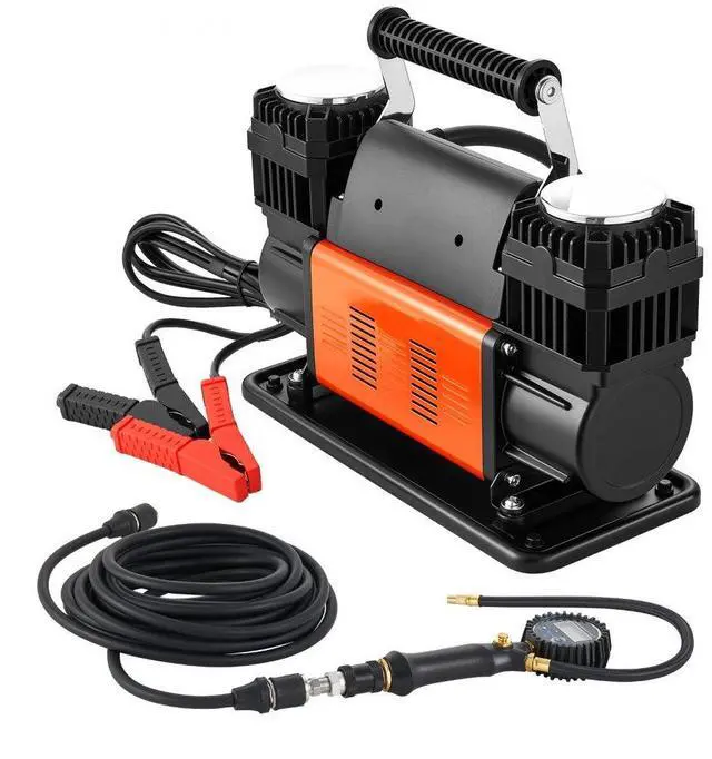 Type: Heavy-Duty Dual Cylinder Air Compressor,Item Model Number: YD-127-C,Max Air Flow: 10.6 CFM,Product Weight: 23.58 lbs / 10.7 kg ,Rated Power: 1080W,Input Voltage: DC12V-DC13.8V,Max Working Pressure: 150 PSI,Product Dimensions: 14.37 x 5.91 x 8.94 inch / 365 x 150 x 227 mm,Main Material: Iron, Aluminum Alloy