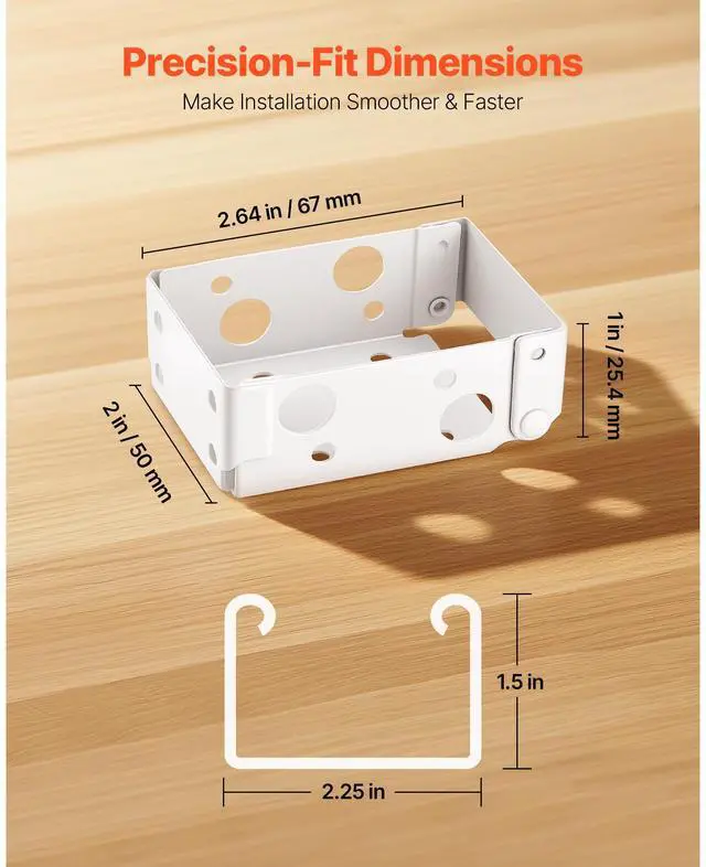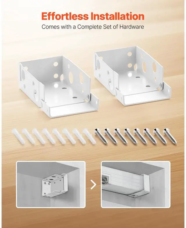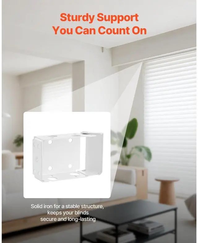 VEVOR Box Mounting Brackets, 2 Pcs, Box Blind Bracket for Window Blinds, Fit for 1.5 x 2.25 inch Headrails, with Self-Tapping Screws and Expansion Tubes, Sturdy Iron, for Blinds Installation, White