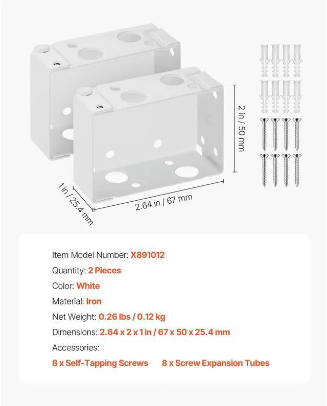 Color: White,Item Model Number: X891012,Quantity: 2 Pieces,Dimensions: 2.64 x 2 x 1 in/67 x 50 x 25.4 mm,Material: Iron,Net Weight: 0.26 lbs/0.12 kg