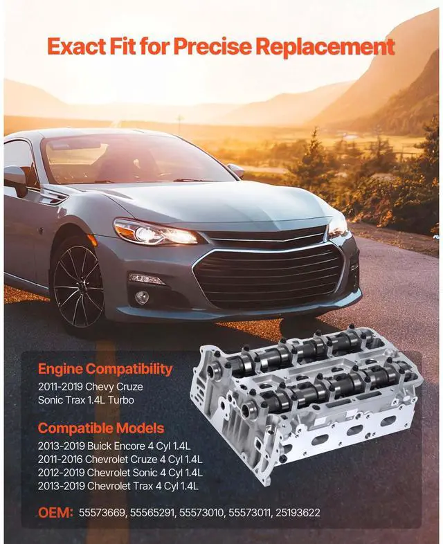 VEVOR Cylinder Head Assembly for 2011-2019 Chevy Cruze Sonic Trax 1.4L Turbo, 2013-2019 Buick Encore 4 Cyl 1.4L, Complete Engine Cylinder Head Assembly Replaces 55573669, 55565291, 55573010, 55573011