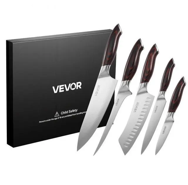 VEVOR Kitchen Knife Set, 5 Piece High Carbon Stainless Steel Sharp Knife Set, Durable and Rust-Resistant, Professional Kitchen Cutlery with Ergonomic Crack-Resistant Handle, for Precise Cutting