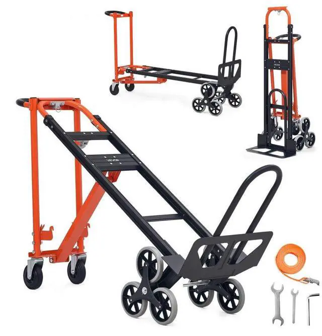 VEVOR 3 in 1 Industrial Convertible Stair Climbing Cart, 770 lbs Max Load, Folding Hand Truck Dolly with Handle & Wheels, Stair Climbing Utility Trolley for Transport & Moving, Orange & Silver