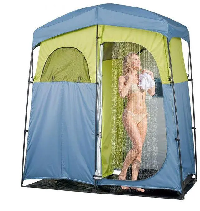 VEVOR Camping Shower Tent, 2-Room Portable Privacy Tent Changing Room with Shower Bag, Ground Stakes, Ropes, Carry Bag, and Support Poles, 150D Oxford Fabric with Silver Coating, for Camping, Fishing