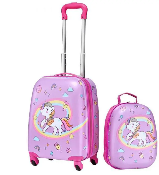 VEVOR Kids Luggage Set, 2 Piece, 18 Inch Hardside Rolling Wheels Suitcase with Hard-Shell Backpack, Unicorn Kids Carry on Luggage Set, Holiday Birthday Gift for Girls & Boys, Airline Approved