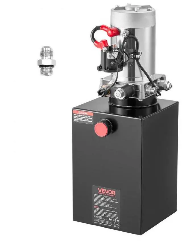 VEVOR 13 Quart Hydraulic Power Unit, Single Acting Dump Trailer Pump, 3200 PSI Max Relief Pressure & 0.91 GPM Flow Rate, DC 12V Hydraulic Pump with Metal Reservoir for Dump Trailer Car Lifting