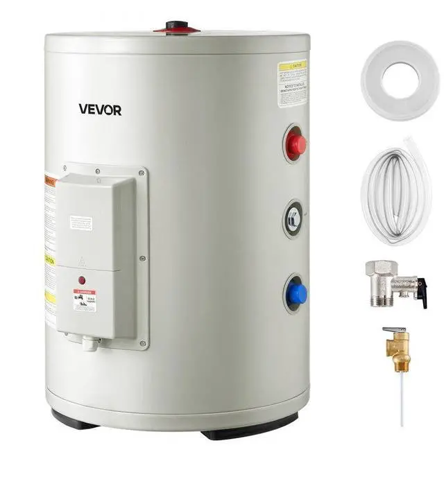 VEVOR 12 Gallon Electric Tank Water Heater, 1600W Point-of-Use Hot Water Heater with LED Display, Knob Control, Side Outlet, 120V Storage Design with T&P Valve for Small Apartments & Studios, Gray