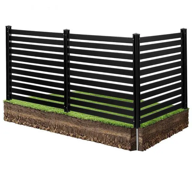 VEVOR 3 Panels Outdoor Privacy Screen, 50 x 48 in Air Conditioner Fence with 27.6 in Ground Stakes, Pool Equipment Enclosure, Vinyl Privacy Fence, Ideal for Trash Can and A/C Units, Black