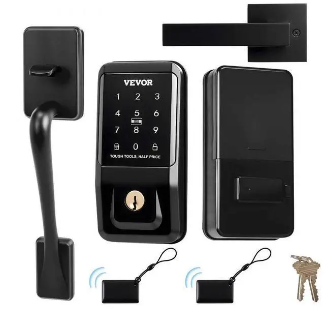 VEVOR Keyless Entry Door Lock with Handle Set, Touchpad Electronic Deadbolt with IC Card, Customizable User Codes, Keyed Entry, Auto Lock, Anti-Peeking Password, Backlit, for Home, Matte Black