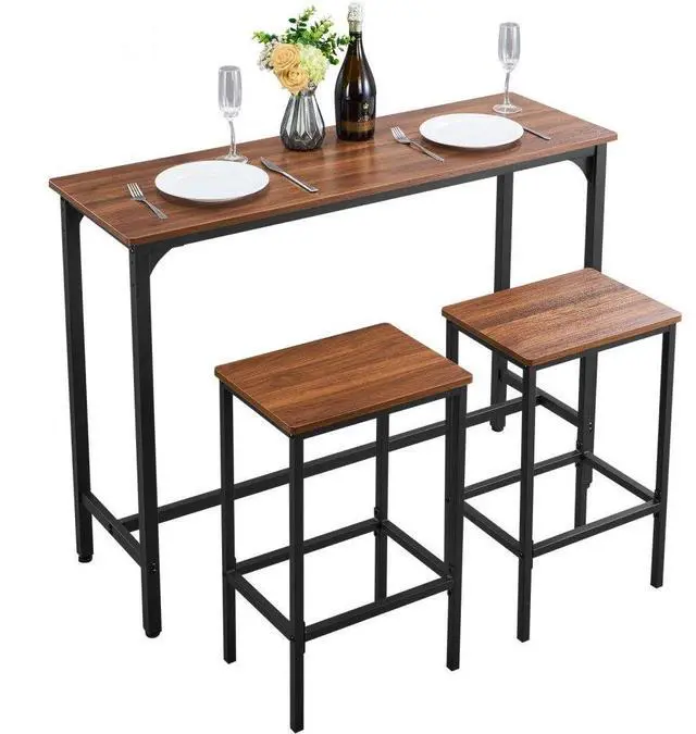 VEVOR Bar Table, 3PCS 47 Bars Tables Set, Bar Tables and Chair Set with Rounded Edge Design, Rectangular Pub Table with Two Stools for Office Desk, Breakfast Corner, Mini Bars, Rustic Brown, Black