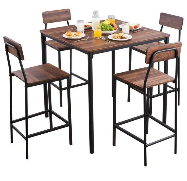VEVOR Bar Table, 5PCS 35 Bars Tables Set, Bar Tables and Chair Set with Rounded Edge Design, Square Pub Table with Four Stools for Living Room, Dining Room, Kitchen, Walnut Color, Black