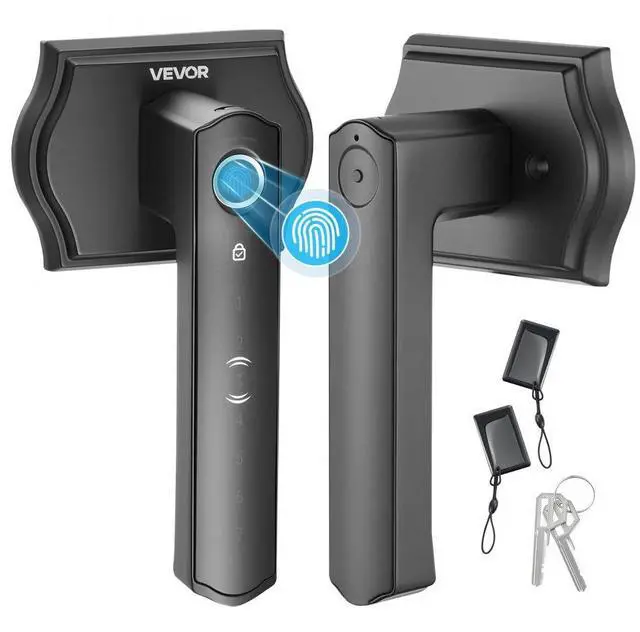 VEVOR Fingerprint Door Lock Set, Electronic Biometric Knob Keyless Entry Door Lock with Handle, Auto Locking, One-Time Code, Anti-Peeking Password, Easy Installation, for Home, Apartment, Matte Black