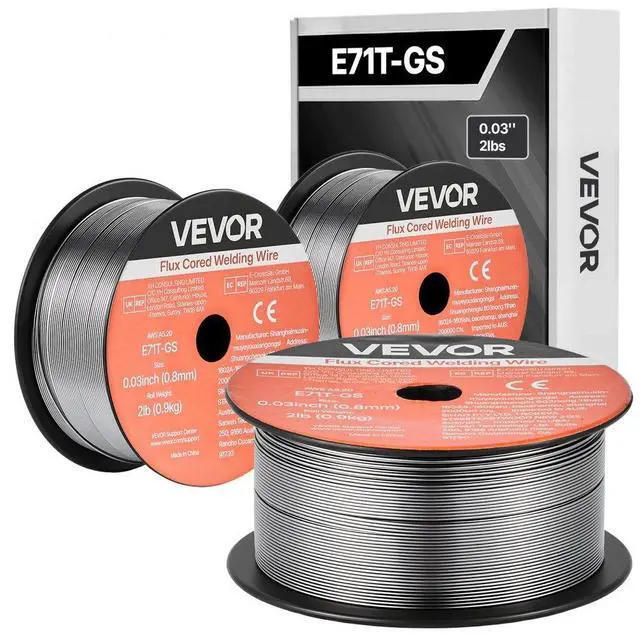 VEVOR Flux Core MIG Welding Wire, E71T-GS 0.03-inch 2 LBS, Gasless Mild Steel Welding Wire with Low Spatter for All Position Arc Welding, Self-Shielded for Outdoor Use (Pack of 3 Rolls)