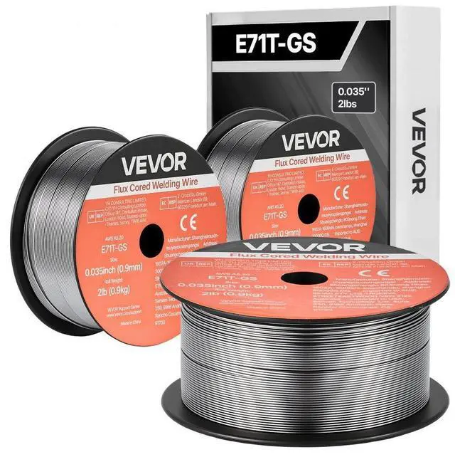 VEVOR Flux Core MIG Welding Wire, E71T-GS 0.035-inch 2 LBS, Gasless Mild Steel Welding Wire with Low Spatter for All Position Arc Welding, Self-Shielded for Outdoor Use (Pack of 3 Rolls)