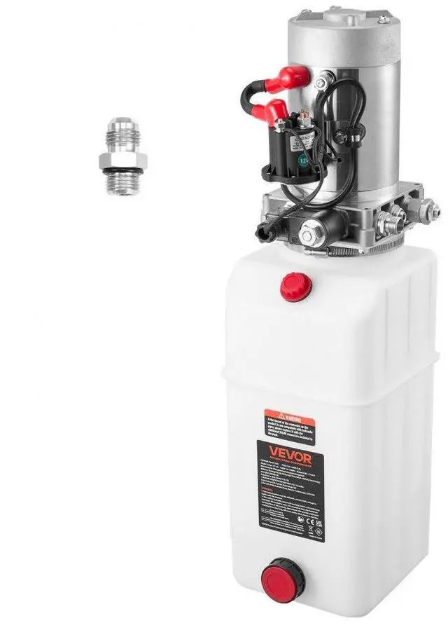 VEVOR 6 Quart Hydraulic Power Unit, Single Acting Dump Trailer Pump, 3200 PSI Max Relief Pressure & 0.91 GPM Flow Rate, DC 12V Hydraulic Pump with Metal Reservoir for Dump Trailer Car Lifting, White