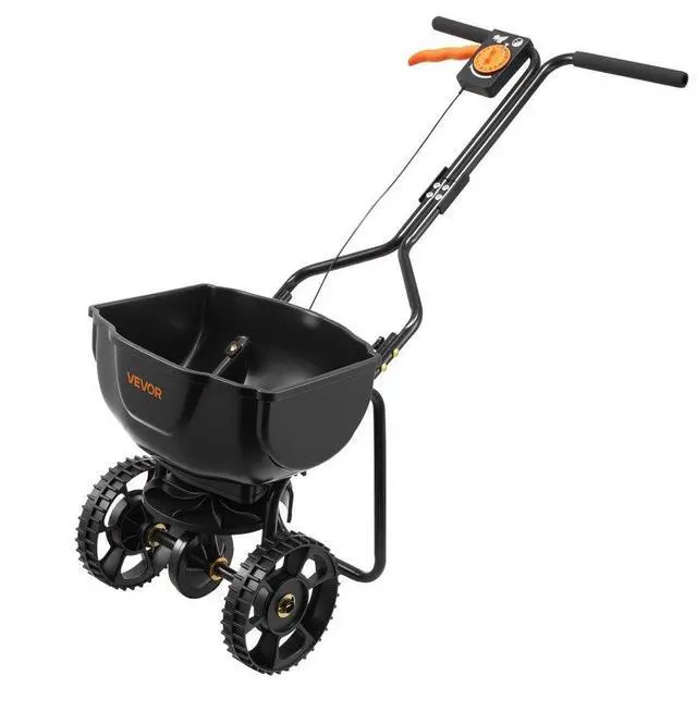 VEVOR Walk-Behind Spreader, 9.8ft Spreading Width, Push Broadcast Spreader with 10" All-Terrain Tires, Adjustable Flow Control, 15lbs Capacity Hopper, Lawn Spreaders for Fertilizer Seed Small Home Use